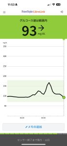 そして、この食事を摂ったのちの私の血糖推移はこのようになりました(食事の写真を撮ったのが8:46なので、食事による血糖推移はそれ以降の変化ということになります)。